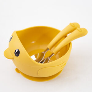 Bowl Silicona Bebe Sopapa Cubiertos Mostaza Patito