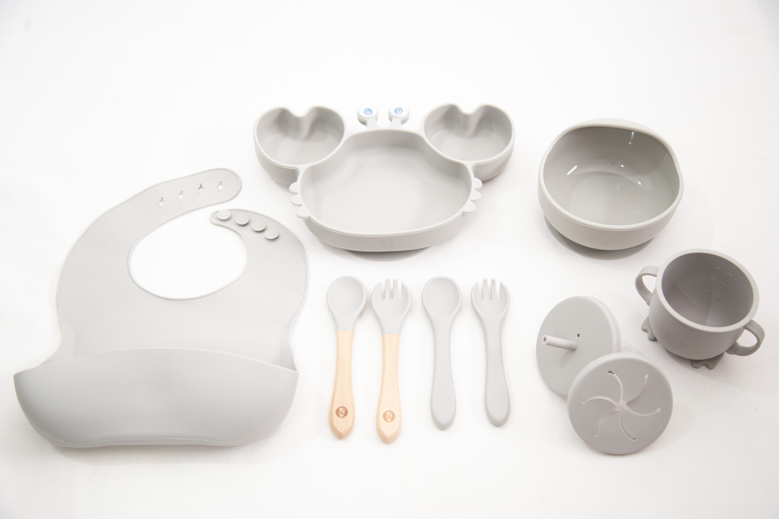 Set Bebe Alimentación Completa Silicona Cangrejo Gris