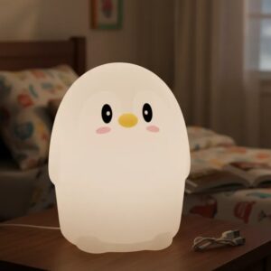 Transformá las noches de tus hijos con esta luz de noche en forma de pingüino, combinando diseño, seguridad y confort en un solo producto.